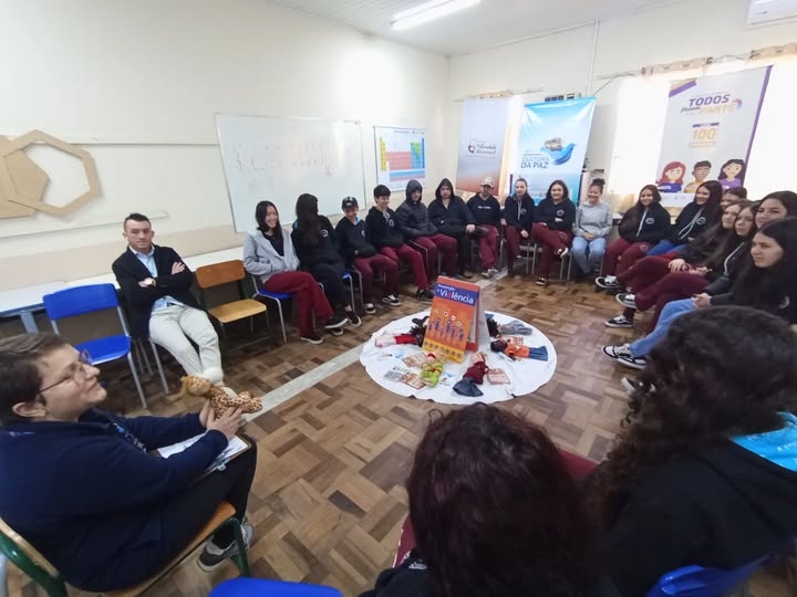 A equipe do Instituto Paternidade Responsável esteve com o 9º ano 2 com 20 estudantes no período Matutino da Escola Rubens de Arruda Ramos para executar o projeto Cultura de Paz com Rodas de Conversa financiado pelo CEDCA SC.